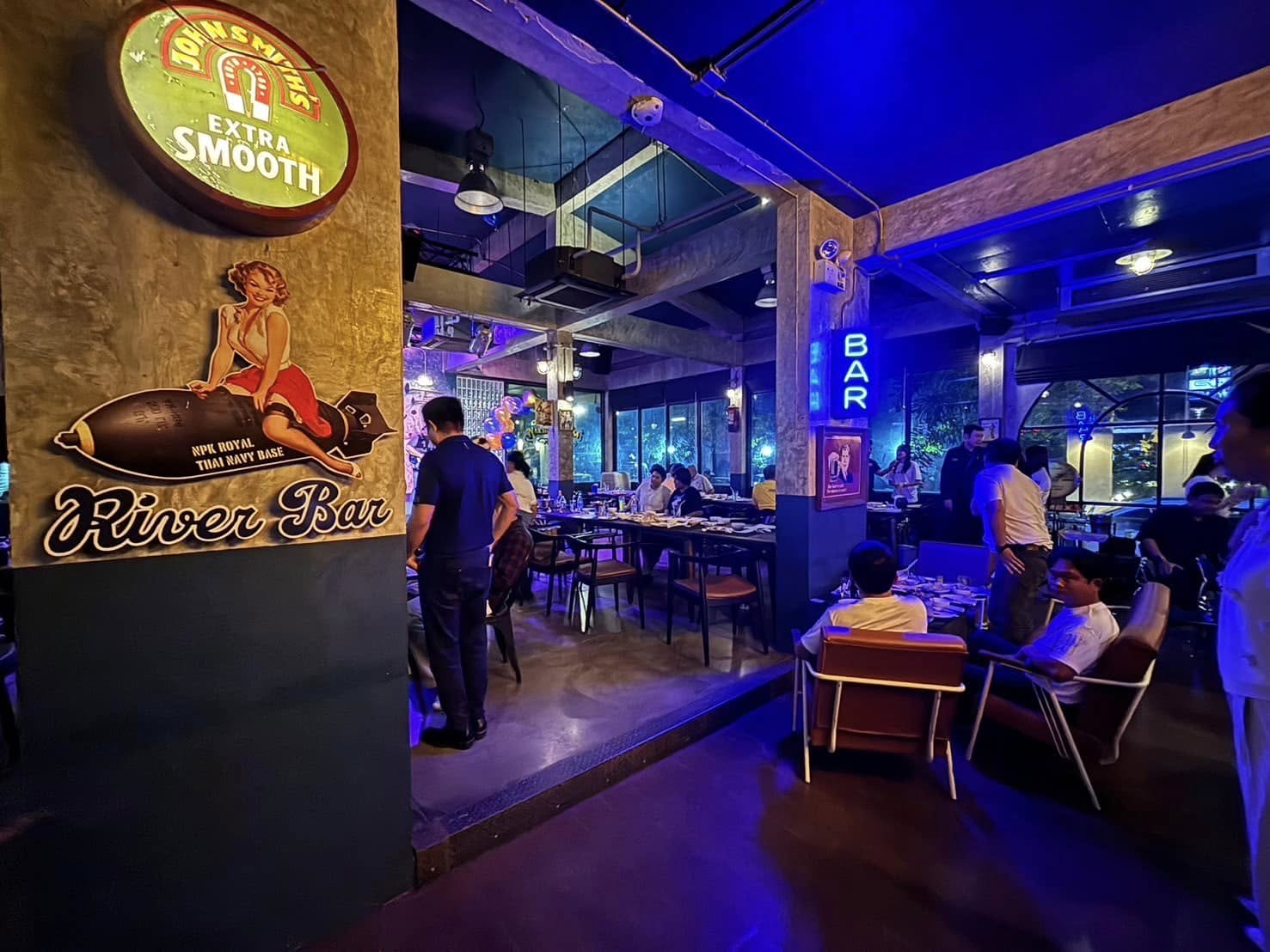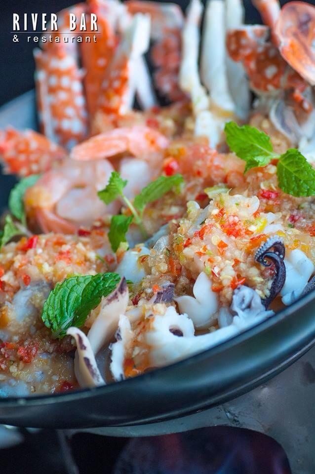 The River Bar & Restaurant offers tasty, delicious and a great variety of That, Asian, Japanese and European food, both fusion and traditional dishes. The Restaurant is a square and lofty room, following the New York loft style, with the infusion of Japanese tranquility design, to induce and enhance relaxing and calming environment. Exposed concrete walls are softened with beautiful photographes while all tables and chairs are made of wood, to signify the rustic environment. All the dishes start with the care in selecting only the beast ingredints and then cook with love and passion, to ensre that our dishes will satisfy the palates of our visitors. Live bands are played every night with the emphasis on Funk, Soul and Old School music. For those who like to be out in the open, the Restaurant also provides seatings on the balcony.River Bar & Restaurant